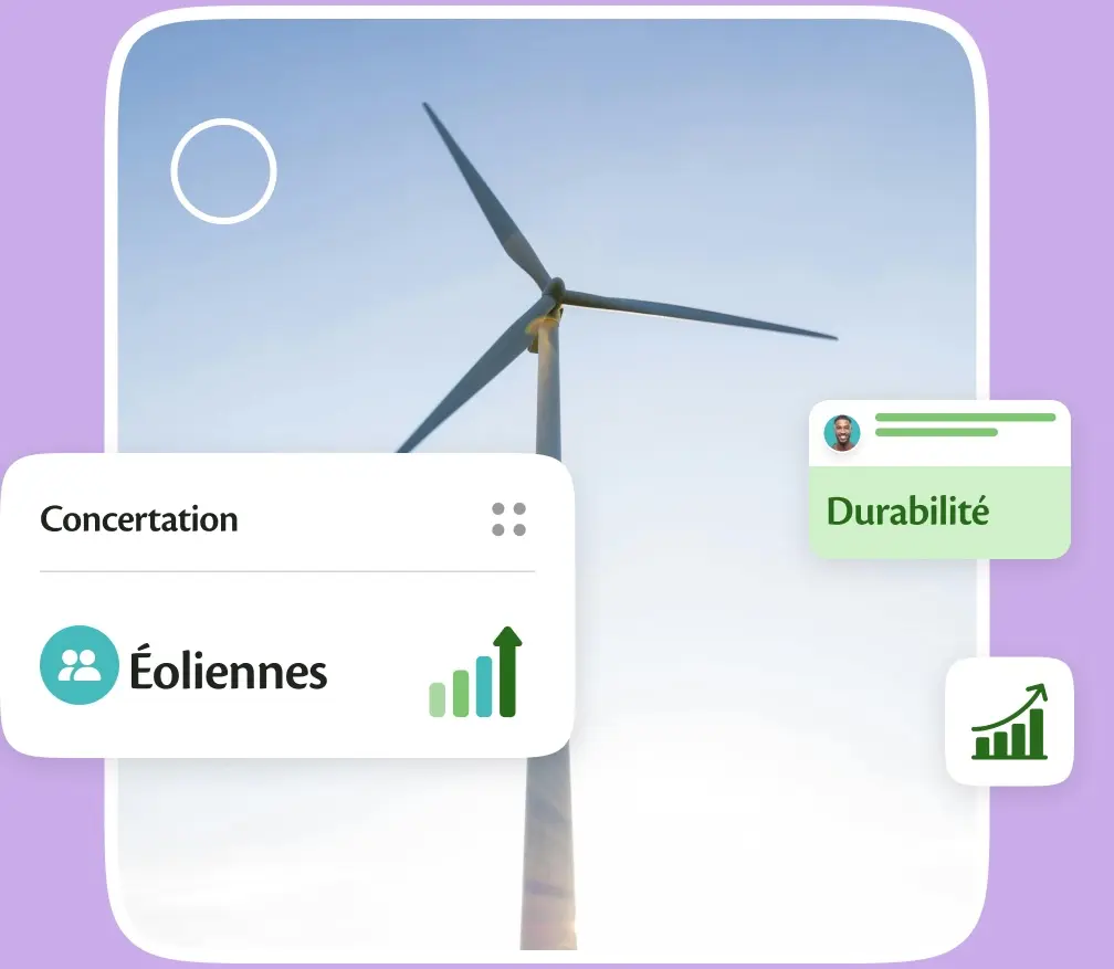 Acteur clé dans le développement de projets éoliens, Galileo Energies Nouvelles a la volonté de participer activement à la transition énergétique tout en soutenant les territoires, répondant ainsi aux enjeux locaux de durabilité, d’indépendance énergétique et de création de valeur à long terme.